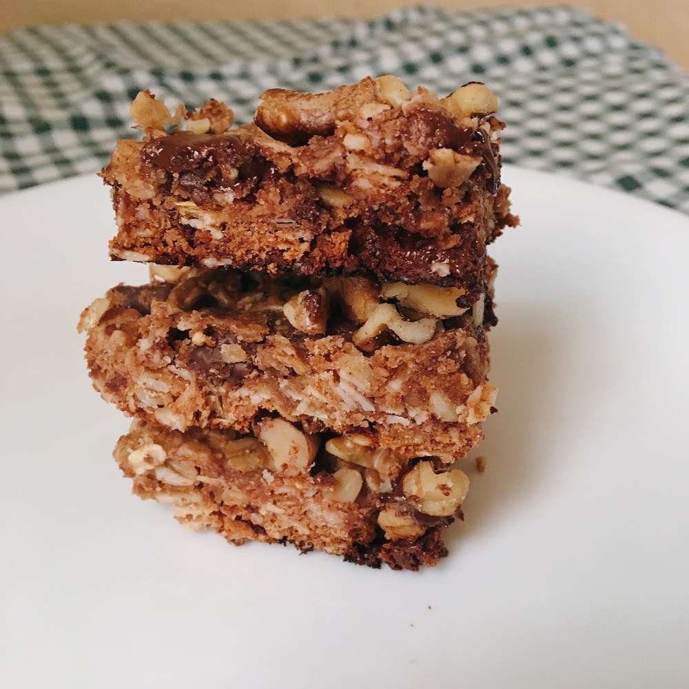 Ahora si en un bowl mezclamos todos los ingredientes secos, y en otro bowl añadimos todos los ingredientes húmedos y los añadimos a nuestro bowl con la mezcla de avena, revolvemos hasta que queden casi incorporados casi todos los ingredientes y finalmente añadimos chips de chocolate amargo o del que prefieras. Pasamos la mezcl a nuestro recipiente y lo horneamos de 10 a 15 minutos a 180 grados.
